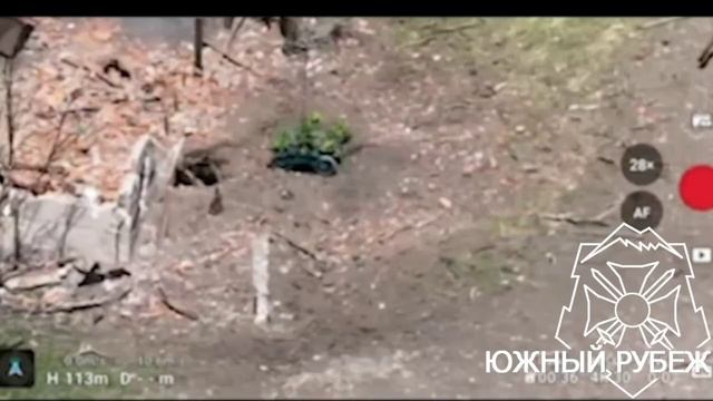 Поражение огневой точки ВСУ наземным роботизированным комплексом «Крот-1» в районе н.п. Дылеевка