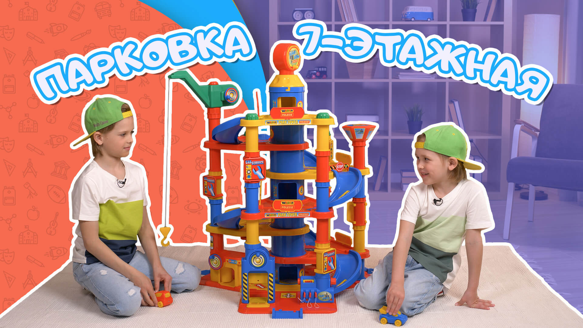 Паркинг 7-уровневый с автомобилями (в коробке) Артикул 37848 Сегодня Доминик и Даниэль распакуют самую большую парковку, выпускаемую нашей фабрикой. Дети покажут все функции игрушки: прокатят машинки по съездам, заправят их, заедут на мойку и мастерскую, покатаются на лифте и даже воспользуются подъемным краном. Подробно ознакомиться с представленным игровым набором можно на нашем сайте: https://www.polesie-toys.com/catalog/parkingi__i_garaji/parking_7urovnevyiii_s_avtomobilyami_v_korobke/