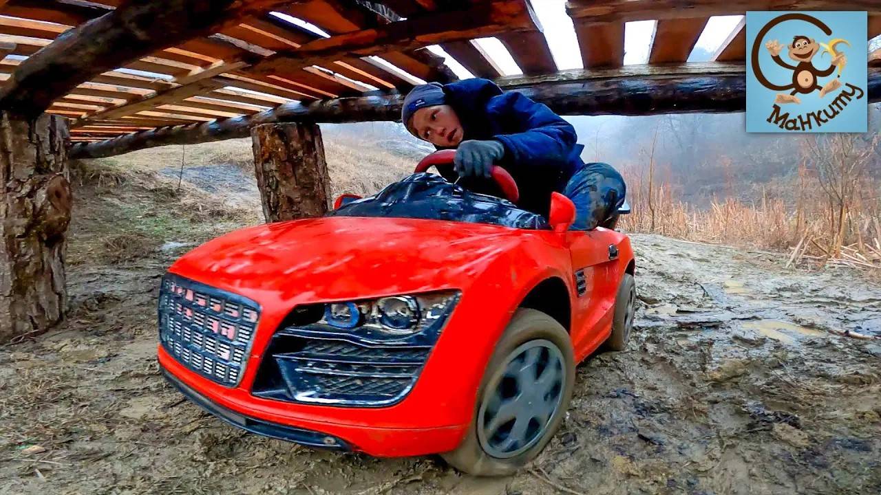 Диана и Даня катались в своей машине для детей, но им попалось канава которую дети не могли проехать на своей красной машине. Тогда дети решили построить мост, чтобы не ездить по грязи в канаве.