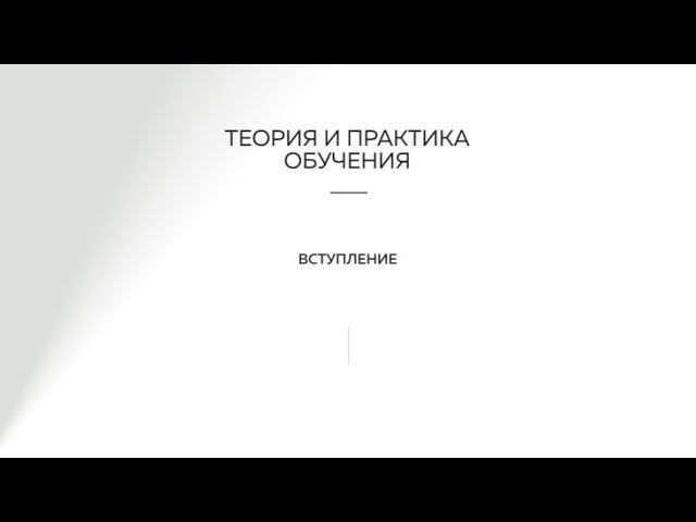 Вступление для курса Теория и практика обучения