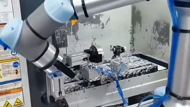 Устройство автоматической смены заготовок снимает обработанную деталь