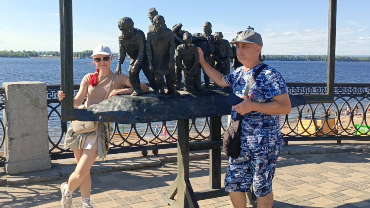 Бурлаки на Волге и Улица Ленинградская, пешеходная, в Самаре.