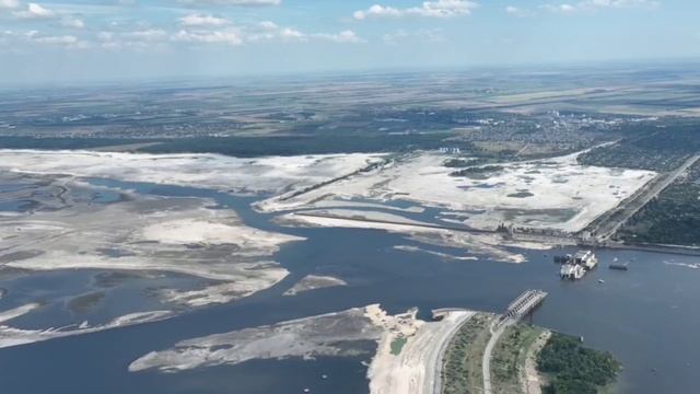 Вид на Днепр в районе Новой Каховки Вот так сегодня выглядит уже просто Днепр, а не Каховское водохранилище в месте снесенной плотины бывшей Каховской ГЭС. Видно, что само здание точно не подлежит ремонту, а если когда-то будет принято решение восстановить сооружение, то по факту это будет уже полногстью новая постройка. Также видно, что река до сих пор является грозным препятствием для ее форсирования (несколько сот метров), а огромные открытые подходы к реке (где очень много мелких озер) добавочной сложностью любой стороне, которая вдруг захочет это сделать.