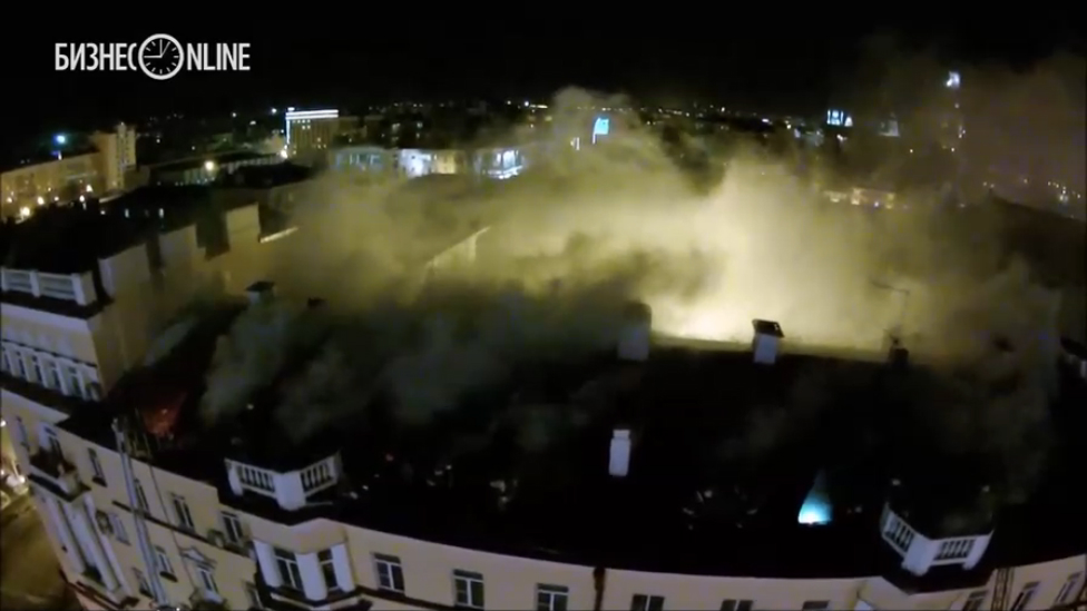 В Казани 10 февраля 2016 года загорелась квартира в многоэтажном жилом доме, откуда огонь постепенно перекинулся на крышу здания.