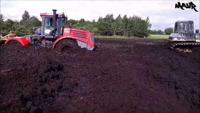 Застрявшие грузовики и трактора в грязи.