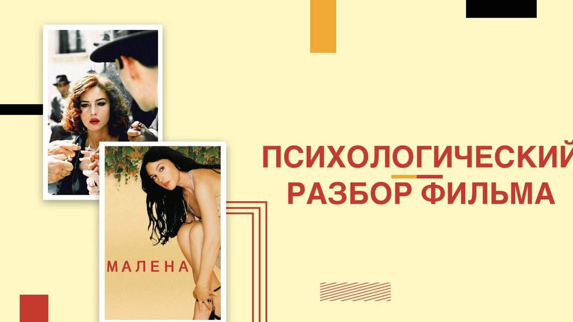 Представляем вашему вниманию запись эфира по фильму Джузеппе Торнаторе "Малена" При разборе выделили три основных аспекта: 🔹 Взросление Ренато и тот вклад, который внесла Малена в этот процесс 🔹 Ненависть общества к инаковости и женской красоте 🔹 Сломленность героини в финале фильма. Приятного просмотра! Контакты ведущих в телеграм Анна Устиманова @anna_ustimanova Екатерина Степаненко @Katerina_OneStep Ольга Швец @olgaa161