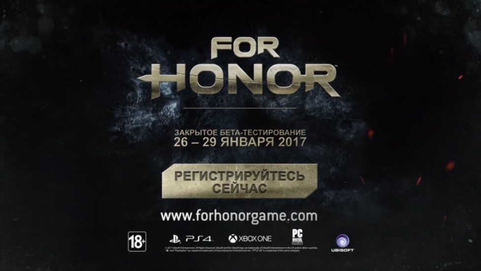КУПИТЬ ЭТУ ИГРУ ДЕШЕВО И СО СКИДКОЙ: http://steambuy.com/link.php?id=429484 МЫ ВКОНТАКТЕ: http://vk.com/zarbabaygames ВСЕ ТРЕЙЛЕРЫ здесь : https://www.youtube.com/playlist?list=PLMZ-XAOhd9F5PnH3gMEB2UWTVE8rsWoHB ВСЕ ВИДЕО КАНАЛА: https://www.youtube.com/user/ZarbabayGames/playlists Запишитесь на закрытый бета-тест : http://forhonorgame.com/youtube-register Присоединяйтесь к битве For Honor в сетевом закрытом бета-тесте с 26 по 29 января. Он будет включать 3 игровых режима, 9 героев и 6 карт. Вступите в Военный конфликт, проявите себя и приведите свою фракцию к победе. For Honor в продаже с 14 февраля 2017 на PlayStation 4, Xbox One и PC.