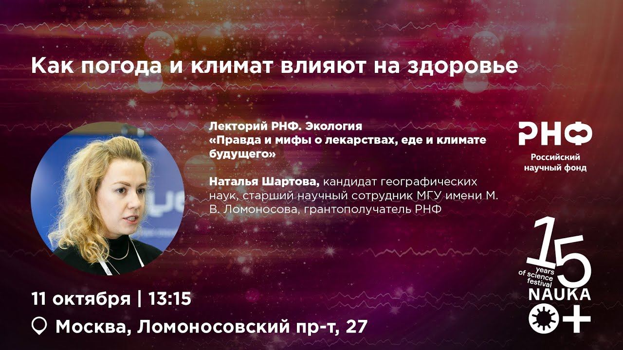 Является ли нормой метеозависимость? Что опаснее – жара или холод? С какими климатическими рисками встречаются люди и будет ли комфортнее климат будущего? Об этом поговорила Наталья Шартова, кандидат географических наук, старший научный сотрудник МГУ, грантополучатель РНФ.