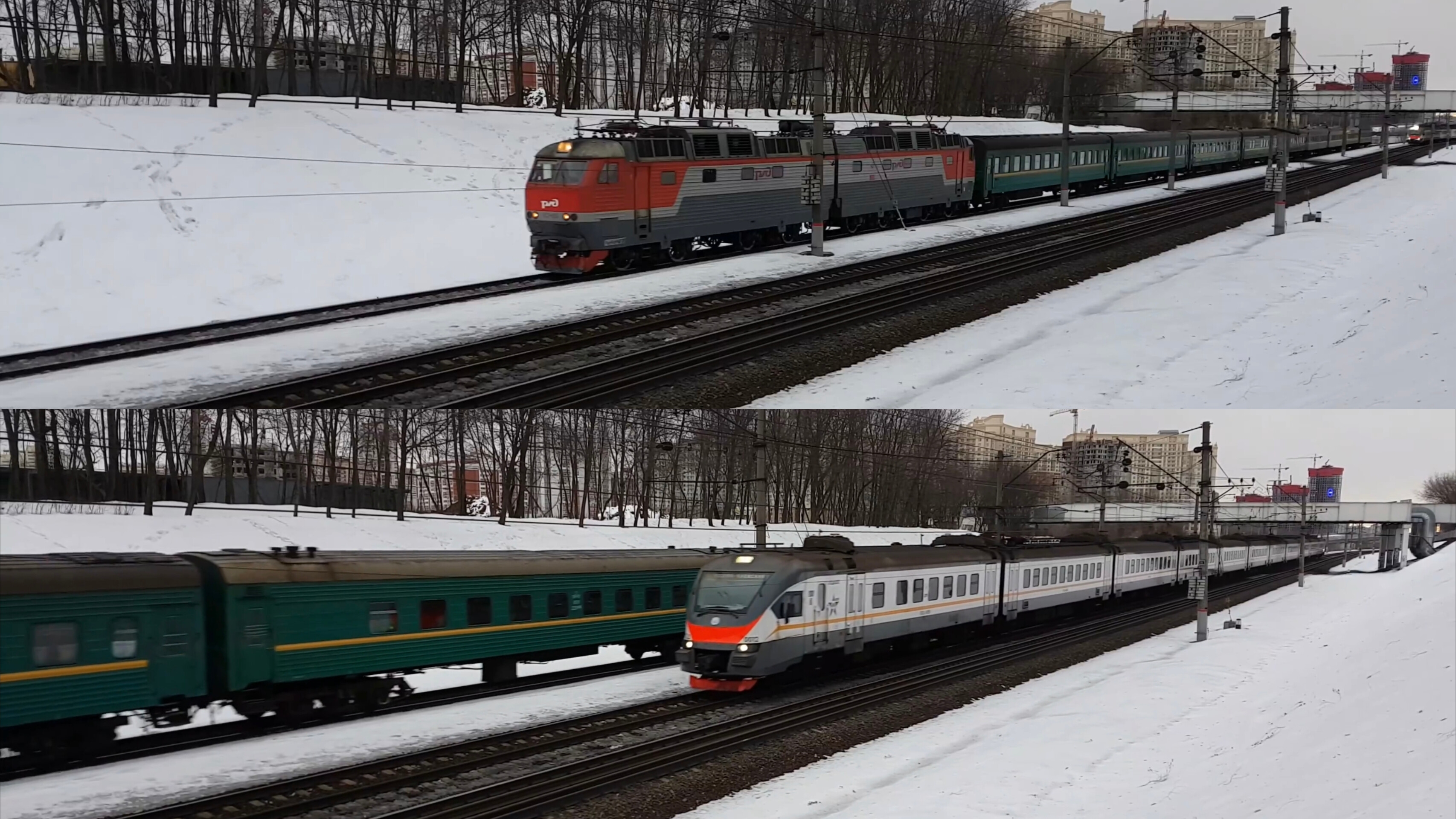 17 февраля 2019 года в 16:38 Перегон Очаково -Москва-сортировочная Киевское направление Московская железная дорога CHS7-014 with train №48 Chisinau-Moscow on 3 main and EP2-0012 on 2 main race February 17, 2019 at 16:38 Ochakovo-Moscow- sorting stage Kievskoe direction Moscowskaya railway