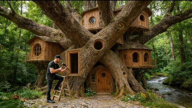 Я потратил 7 дней на постройку дома для выживания внутри гигантского дерева. Бушкрафт