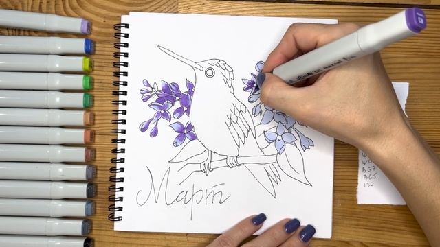 Рисунок скетч маркерами "Март 2022" для скетчбука | Срисовка картинки для начинающих