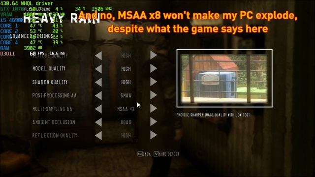 Heavy Rain demo - i5 4690K & GTX 1070 - FPS Test and Settings