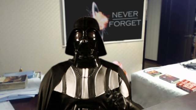 Герой серии фильмов «Звёздные воины» Дарт Вейдер отчитывается перед главой ордена ситхов о действиях повстанцев. Однако его рассказ прерывают дроиды.