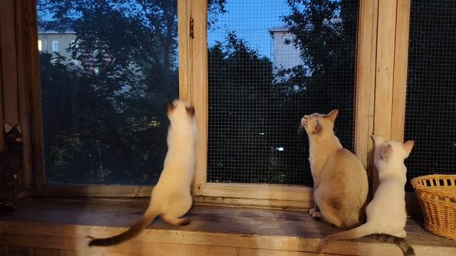 Котята ловят мотылька