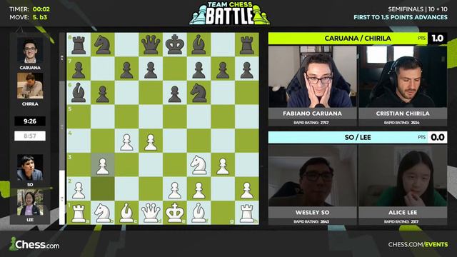 Team Chess Battle is an event where two-player teams can freely communicate while facing other teams in a series of rapid chess games. Eight teams of two players each compete in a single-elimination bracket. Hikaru Nakamura, GothamChess, Anish Giri, Daniel Naroditsky, Wesley So, Fabiano Caruana and more battle for their share of the $25,000 prize fund! ⚔️ https://www.chess.com/events/2024-team-chess-battle Follow us here 😀: ✅ Join the world's largest chess community: http://www.Chess.com 💜 Check us out on Twitch: https://www.twitch.tv/chess 📸 Follow us on Instagram: https://www.instagram.com/wwwchesscom 📱 Like us on Facebook: https://www.facebook.com/chess 🎶 Follow us on TikTok: https://www.tiktok.com/@chess 💙 Follow us on Twitter: https://twitter.com/chesscom #chess #fabianocaruana #wesleyso