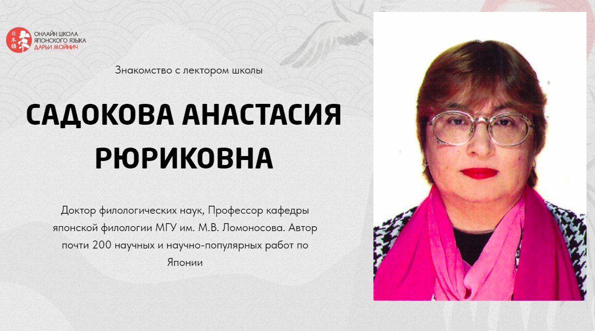 Знакомство с Анастасией Рюриковной Садоковой. Авторе лекций по Культуре Японии