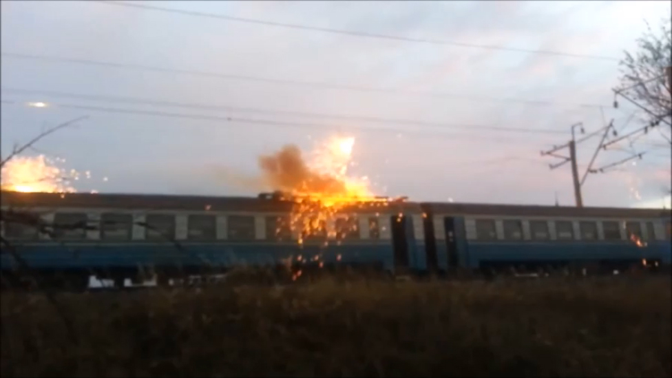 Горит электричка возле Кривого Рога, Тимково-Никополь, 137-й км. Контактные провода обрываются, а защита не сработала...