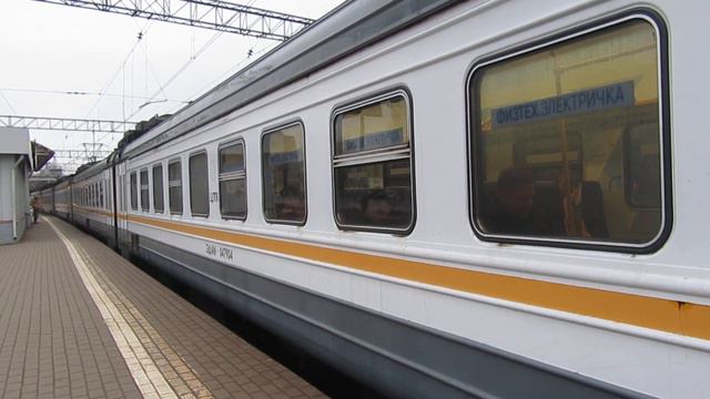 Электропоезд ЭД4М-0479 ЦППК "Физтех-электричка"(обслуживается ТЧ-50 им. Ильича) рейсом до станции Одинцово отправляется со станции Кунцево-1, Белорусское направление МЖД. г . Москва. 20.11.2018 15:27-15:29