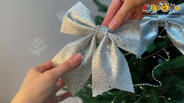 297122 Набор украшений елочных бант серебряный с блестками 15см 2шт
