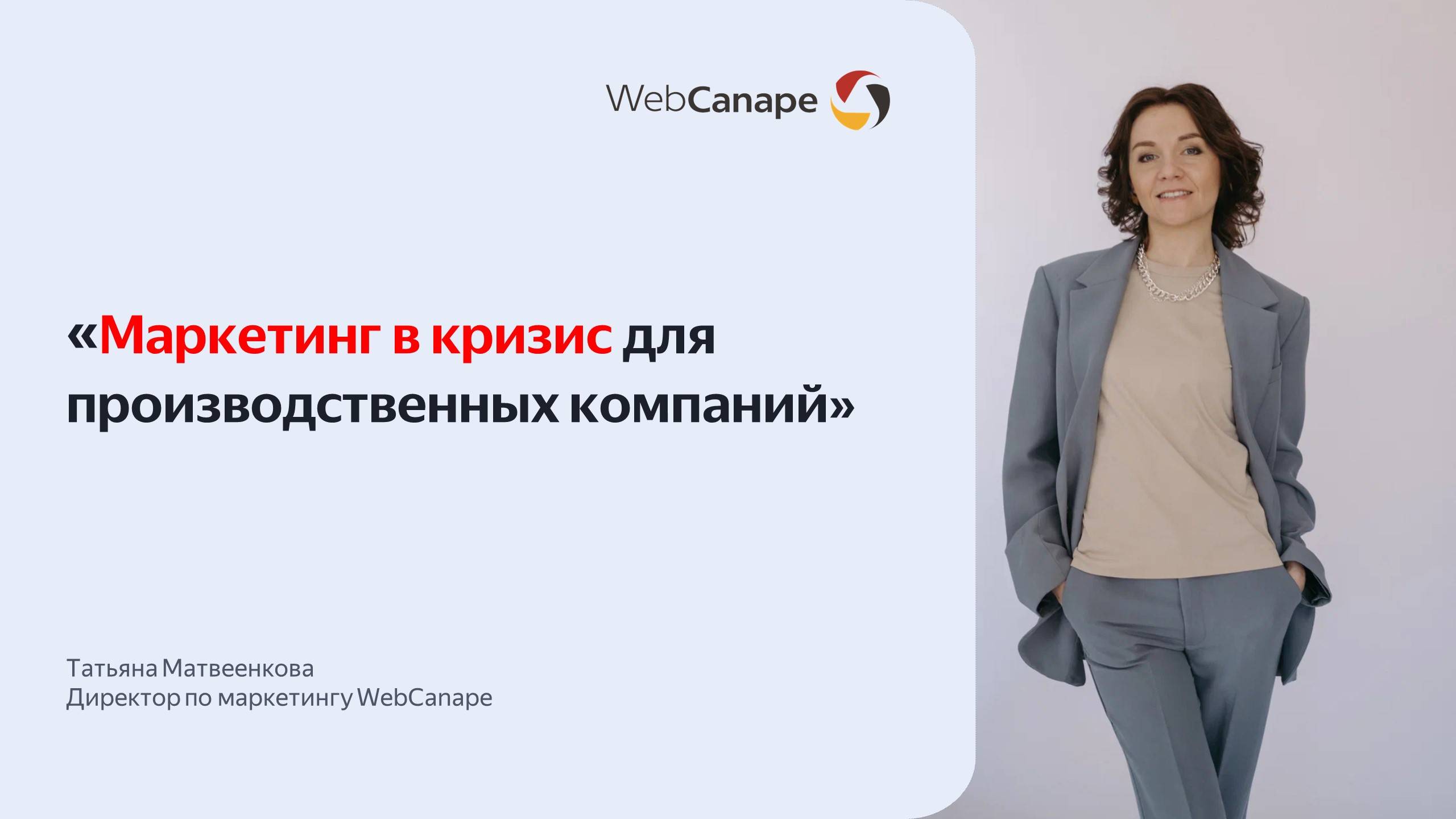 На вебинаре «Маркетинг в кризис: как производственникам адаптироваться в период снижения спроса» директор по маркетингу WebCanape Татьяна Матвеенкова расскажет, как эффективно строить маркетинг даже в условиях ограниченных ресурсов и неопределённости! Что обсудим на вебинаре: ▪️ Какие вызовы ждут производственные компании в 2025 году ▪️ Как автоматизация помогает оптимизировать процессы и экономить бюджет ▪️ Практические шаги по оптимизации маркетинга на примере реальных кейсов Кому это полезно: ☑️ Руководители компаний ☑️ Маркетологи ☑️ Руководители отделов продаж ☑️ Владельцы бизнеса и директора по развитию ⏳ Тайм-коды: 00:00 Начало вебинара 00:55 Представление спикера 01:35 План вебинара 03:30 Книга «PRO Сайты» 04:35 Что происходит с рынком 05:55 С чем сейчас сталкивается бизнес 08:07 Что реально говорит бизнес 10:00 Автоматизация: инструмент экономии и повышения эффективности 11:16 Какой должна быть карточка товара 12:05 Каким должен быть калькулятор на сайте 13:55 Какой должна быть корзина на сайте 15:18 Личный кабинет 17:07 Результаты работ 17:30 Оптимизация маркетинга 18:00 Источники привлечения клиентов 18:40 Что важно учитывать, чтобы маркетинг работал 21:27 На чем фокусироваться, чтобы привлекать новых клиентов 28:50 Наши кейсы по маркетингу 31:15 О выставке «Металлообработка-2025» 33:15 Полезные материалы от WebCanape 36:05 Завершение вебинара Записаться на маркетинговую консультацию 🔗 https://webinar.web-canape.ru/consulting_marketing ✏️ Подписывайтесь на «Сомелье маркетинга» https://t.me/WebCanapeChannel
