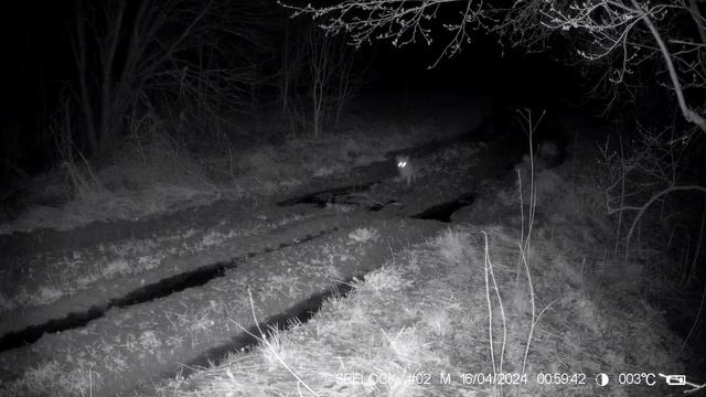 Фотоловушка на лесной дороге, апрель 2024. Лисы, еноты, кое кто еще..