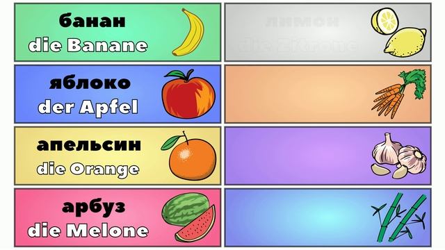 Привет друзья, этот урок создан для тех, кто хочет выучить Немецкий язык за очень короткое время. 👉 Другие уроки: Визуальные карточки 🔴 - http://bit.ly/3XQ9gsf Урок 1. Знакомство: https://youtu.be/2z8lrh4RTyU Урок 2. Пожалуйста и спасибо: https://youtu.be/iD2VJp55JhU Урок 3. Числа: https://youtu.be/D6OtkzG20bk Урок 4. Чувства и эмоции: https://youtu.be/ofSlUy9A5J8 Урок 5. Люди: https://youtu.be/isWiITzHSjk Урок 6. Дни недели: https://youtu.be/-UEcISUKiSw Урок 7. Семья: https://youtu.be/pnnklpCRkqU Урок 8. В школе: https://youtu.be/3f34CObLdYI Урок 9. Месяцы года: https://youtu.be/Ug8hiwOeOLg Урок 10. Цвета: https://youtu.be/y0ptPnHtqWE Урок 11. Время и дата: https://youtu.be/0BCu0Rl9so0 Урок 12. Оплата счёта: https://youtu.be/3Jf7_dVC6bY Урок 13. Предлоги: https://youtu.be/BMf89XgORIY Урок 14. Друзья: https://youtu.be/nD1W2FQjqkE 📌Перевод слов из видео: банан - die Banane яблоко - der Apfel апельсин - die Orange арбуз - die Melone лимон - die Zitrone морковь - die Karotte чеснок - der Knoblauch бамбук - der Bambus #Немецкий #НемецкийЯзык #КурсНемецкого #УчиНемецкий *