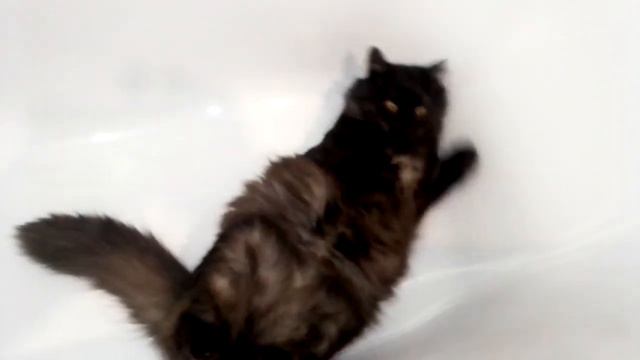 Коты и вода. Пушистик Барсик тестирует ванную.