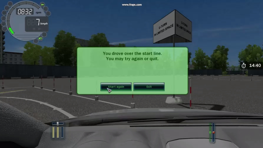 City Car Driving Track test FAILED-You have drove on the start line