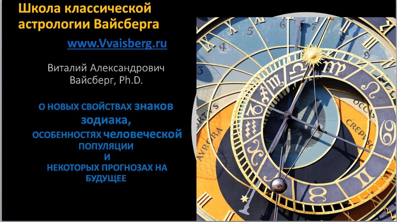 Доклад Виталия Вайсберга(США) на XXIX конференции "Вселенная онлайн"Особенности некоторых знаков зодиака, людской популяции в целом и вытекающий отсюда прогноз на будущее. Вопросы и справки: ?+7-916-810-97-13 Ватсап/Вайбер/Телеграмм ?Базовые группы Московской Академии астрологии "Диастро": ?в ВКонтакте https://vk.com/academy_astrology_diastro ?в Телеграмме https://t.me/astrologydiastro ?Программы обучения https://t.me/diastro_programs и в группе в ВК в разделе "Товары" ❤️Мы не бросаем своих студентов: они могут присутствовать на уроках последующих потоков в качестве вольных слушателей (бесплатно). ?Астроклуб "Вселенная онлайн" в Телеграмме https://t.me/conferenceUniverseOnline Для общения в Телеграмм создан чат (вход свободный) https://t.me/chatUniverseOnline ?Международная астрологическая конференция "Вселенная онлайн" на сайте http://universeonline.tilda.ws в ВКонтакте https://vk.com/astroforum_vselennaya_online в Телеграмме https://t.me/confonline