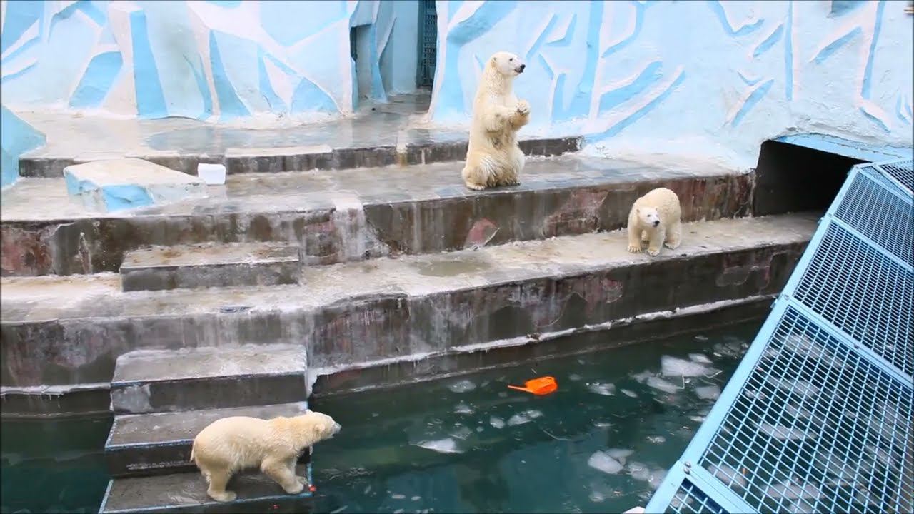 Герда родилась в Москве 20 ноября 2007 года. Её мама Симона, папа Врангель. В Новосибирск переехала 05.08.2008. В 2013 году у Герды и Кая родилась Шилка. В 2015 году она переехала в Японию. В 2015 году родился Ростик. 6 декабря 2018 года он переехал в Китай. В 2018 году родились Норди и Шайна. Сейчас они находятся в нашем зоопарке в закрытой от посетителей хозяйственной зоне. В другие зоопарки их не могут отправить. Сначала была пандемия, сейчас границы закрыты и санкции. Белые медведи Норди и Шайна содержатся в МУП «Новосибирский зоопарк имени Р. А. Шило» с рождения и по настоящее время. Данная пара молодых медведей находится вне экспозиции зоопарка, поэтому посетители не могут их видеть. Передача молодых медведей в другой зоопарк пока не планируется, — ответили на запрос редакции в пресс-центре мэрии Новосибирска. У них есть бассейн, игрушки. Их так же кормят как и раньше. Голодные не бывают. Шайна размером с маму, Норди с папу. Шайна командует Норди. Одиночные животные. Как правило, миролюбивы по отношению друг к другу, но между самцами в брачный период случаются стычки. Взрослые самцы могут нападать на медвежат. Гон с марта по июнь. Продолжительность жизни — максимум 25—30 лет; в неволе рекорд долгожительства — 42 года. Вес очень крупных самцов в некоторых частях ареала 700 и даже 800 кг: есть данные о зверях весом до 1000 кг. Обычно вес меньше. Самки всегда не только меньше, но и значительно легче самцов. Так, самцы в восточной Гренландии в состоянии нормальной упитанности весят 400—450 кг, хорошо упитанные — до 500 кг, самки, даже очень сытые, здесь же редко весят больше 350—380 кг, т. е. их вес составляет около 75% веса самцов. Длина тела на 3-й день после рождения 28—32 см, средний вес — около 755 г (650—840 г). На 26-й день длина тела увеличивается незначительно — до 35—38 см, а вес возрастает до 1125—1275 г. В возрасте 60 дней самцы весят около 7 кг, самки — около 6 кг при длине тела у первых 58—60 см, у вторых 54—58 см. В возрасте 4 месяца медвежата достигают веса 22—23 кг, в 6-месячном возрасте при длине около 110 см — 40—43 кг, в 8-месячном — 58—62 кг. Длина тела в возрасте с 6 до 9 месяцев нарастает по 6—7 см в месяц. Во время зимнего сна рост почти прекращается. В зоопарке медведей кормят утром морской рыбой, хлеб с рыбьим жиром внутри, морковь, яблоки, морская капуста, яйцо дают сырое. Медвежат подкармливают молоком из соски. На ужин мясо (говядина, конина, куры или индейка). Летом и осенью арбузы, дыни, ранетки, кабачки, тыквы, огурцы. Когда показательное кормление летом бросают живую рыбу. Медвежата с медведицей находятся до 2-х лет. 16 декабря 2022 года Герда родила 2-х медвежат. И это две девочки! Имена дали 25 июня. Медвежат зовут Стрелка и Белка. Обзор вольеров белых медведей https://www.youtube.com/watch?v=mAt_b7JD0B4&list=PLGvf0V-rAHxkpGKJaWIZIUxRKgKiqV3xZ&index=17&t=0s