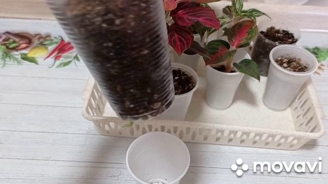 Комнатные растения. Рассада аглаонем подрастает.