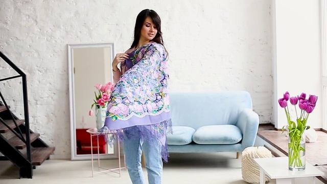 Платок шерстяной с шелковой бахромой "Восходящее солнце", вид 15