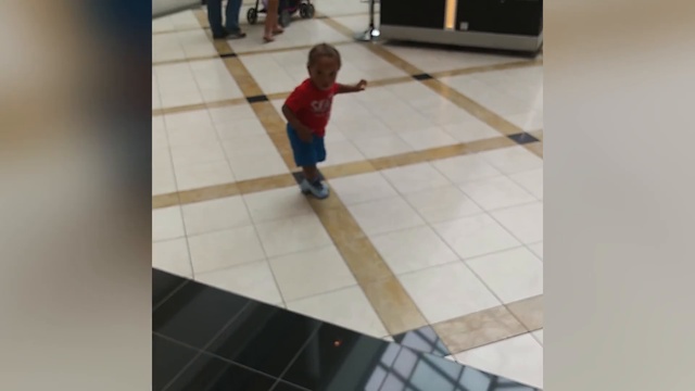 Маленький ребенок не может переступить через черные полосы на полу, потому что не понимает, что это всего лишь рисунок. #дети #пол #фейл #прикол