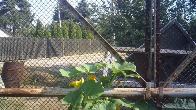 Тыквы по мере роста "залезают" на стенку (сетку забора) - поближе к Солнцу