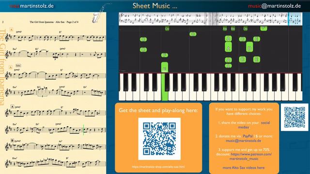 Play "The Girl from Ipanema" with your Alto Sax and Piano (Synthesia and Sheet) · Duo Version