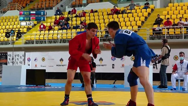 GADZHIMURADOV (RUS) VS LOMIVOROTOV (BLR). Juniors M 71 kg. European SAMBO Championships 2021