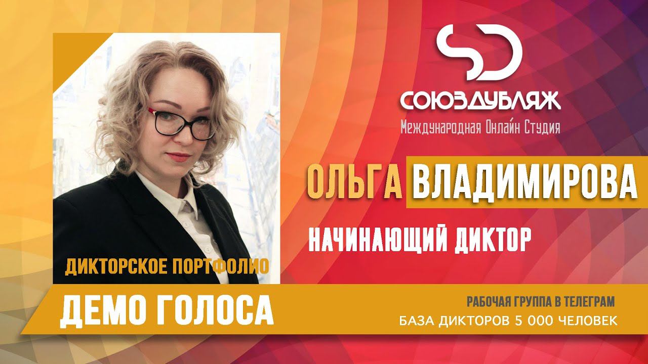 Ольга Владимирова | Начинающий Диктор | База Дикторов "СОЮЗДУБЛЯЖ"