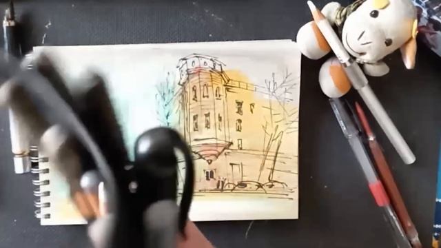 #UrbanSketching. Изо-медитации: 10 минут рисования с музыкой. Летний рисунок зимой по фотографии
