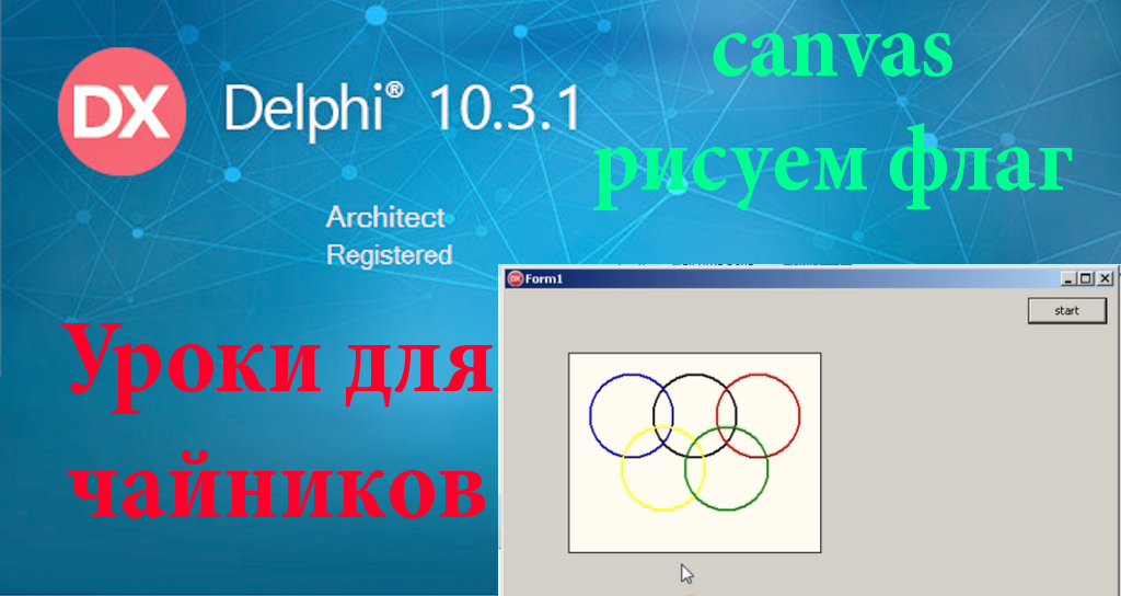 задание на delphi/ Нарисовать олимпийский флаг с помощью canvas. Исходник тут https://dear-ruslan.ru/new/urok/delphi/delphiurok13.php