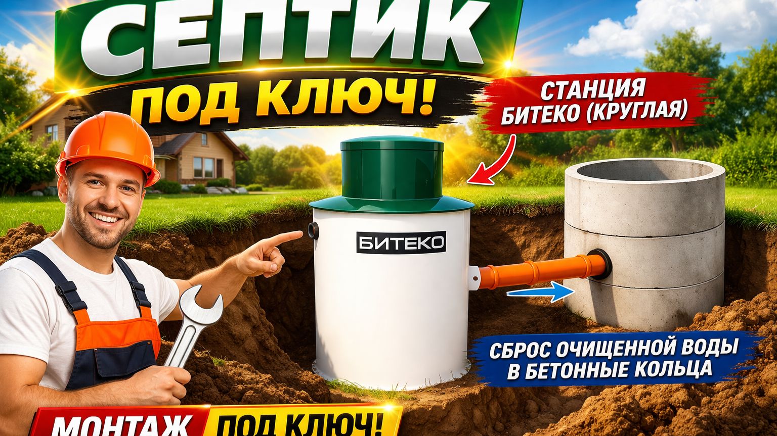 Монтаж септика под ключ - весь процесс за 5 минут