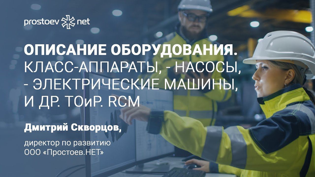 http://www.prostoev.net/ Мы информационно-образовательный проект по вопросам организации управления процессами поддержания надежности, проведения технического обслуживания и ремонтов технологических систем и оборудования. Подписывайтесь на наш YouTube канал https://www.youtube.com/user/prostoevnet _ Тема сегодняшнего видео «Описание оборудования. Класс-Аппараты, - Насосы, - Электрические машины, - Трансформаторы, - КИПиА и РЗА , - Трубопроводная арматура. ТОиР. RCM». 00:00 prostoev.net 00:20 В предыдущем видео мы говорили про ТИПОВУЮ УЗЛОВУЮ СТРУКТУРУ. ОБСЛУЖИВАЮЩЕЕ ПРОИЗВОДСТВО. Стандарт описания оборудования 00:27 Класс-Аппараты 01:19 Класс-Насосы 01:44 Класс-Электрические машины 02:17 Класс-Трансформаторы 02:28 Класс-КИПиА и РЗА 02:54 Класс-Трубопроводная арматура 03:05 В следующем видео: примеры - карьерный самосвал 03:08 Приходите на наш курс «Базовые практики планирования ТОиР, управления надежностью и критичностью оборудования по методике RCM» https://rcm.prostoev.net/ _ Мы в соцсетях: Fb https://www.facebook.com/www.prostoev.NET/ VK https://vk.com/prostoev__net Linkedin https://www.linkedin.com/groups/8464641 Одноклассники https://ok.ru/group/58505577300000 Инстаграм https://www.instagram.com/prostoevnet/ _ http://www.prostoev.net - Информационно-образовательный портал Управления ТОиР #на_вебинаре_обучение_тоир #prostoevnet #простоевнет #техническое_обслуживание #ремонт #тоир #rcm #RCM #управление_надежностью #надежность_оборудования