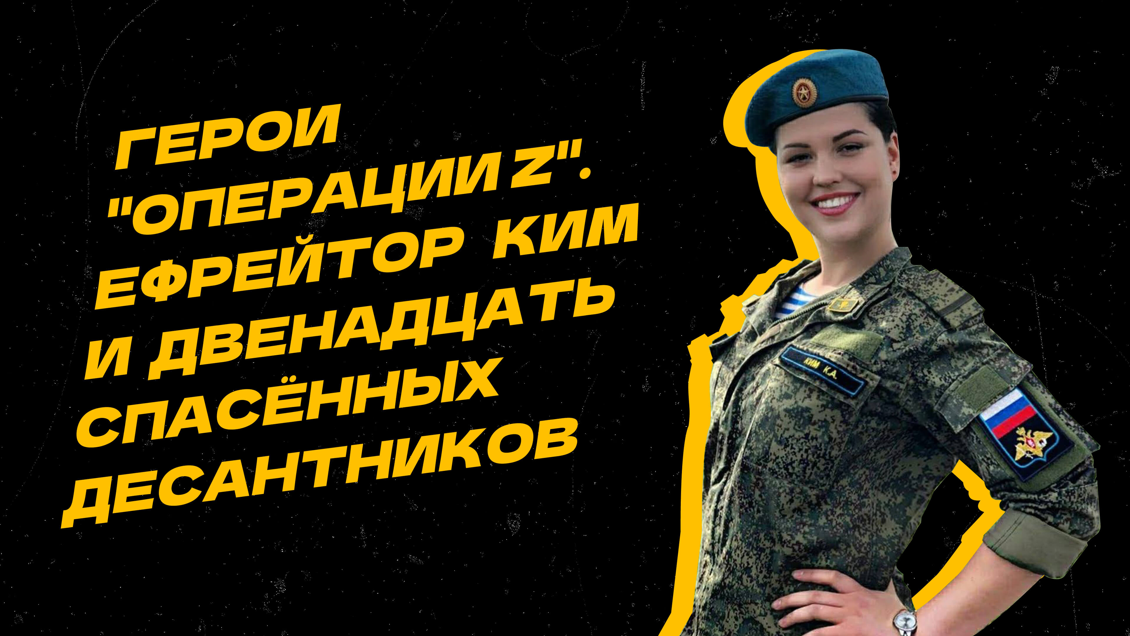 Ефрейтор медицинской службы Кристина Ким в ходе спецоперации на Украине вынесла с поля боя двенадцать раненых десантников. Молодая девушка, рискуя жизнью, оказывала помощь бойцам под вражеским огнём. Кроме того, Кристина спасла жизнь четырёхлетнему мальчику, который был ранен после обстрела автомобиля. О подвиге ефрейтора в нашей рубрике "Герои "Операции Z".