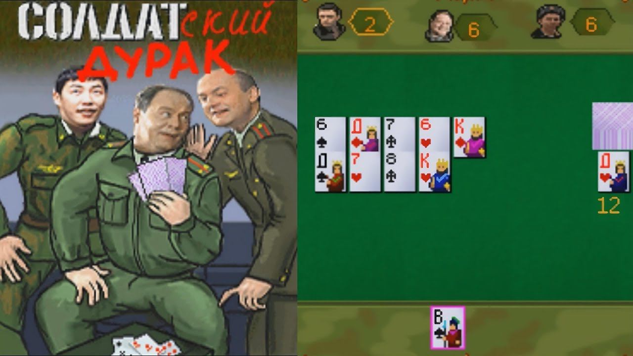 Одна из самых популярных классических игр с великолепной графикой. Теперь Вы можете играть в "подкидного" или "переводного" дурака с героями телесериала «Солдаты». Прапорщик Шматко, ефрейтор Соколов и капитан Кудашов будут оказывать Вам самое настоящее сопротивление. Только солдатский дух и логическое мышление позволят Вам оставить противников в дураках!
