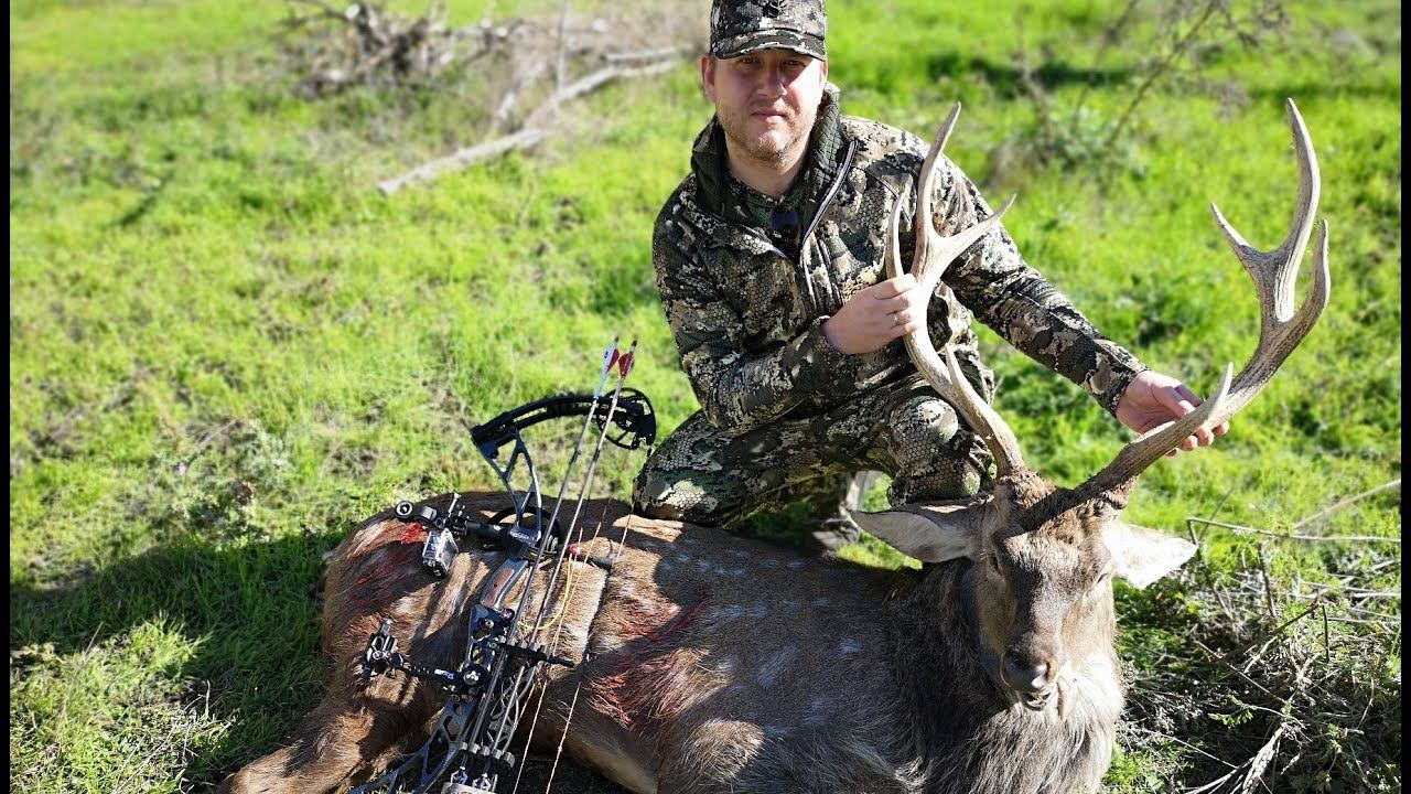 Охота с блочным луком на оленя в вольере.