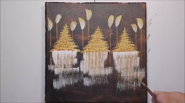 ЗОЛОТЫЕ СОСНЫ - Уроки рисования красками - Акриловая живопись на холсте для детей и родителей!