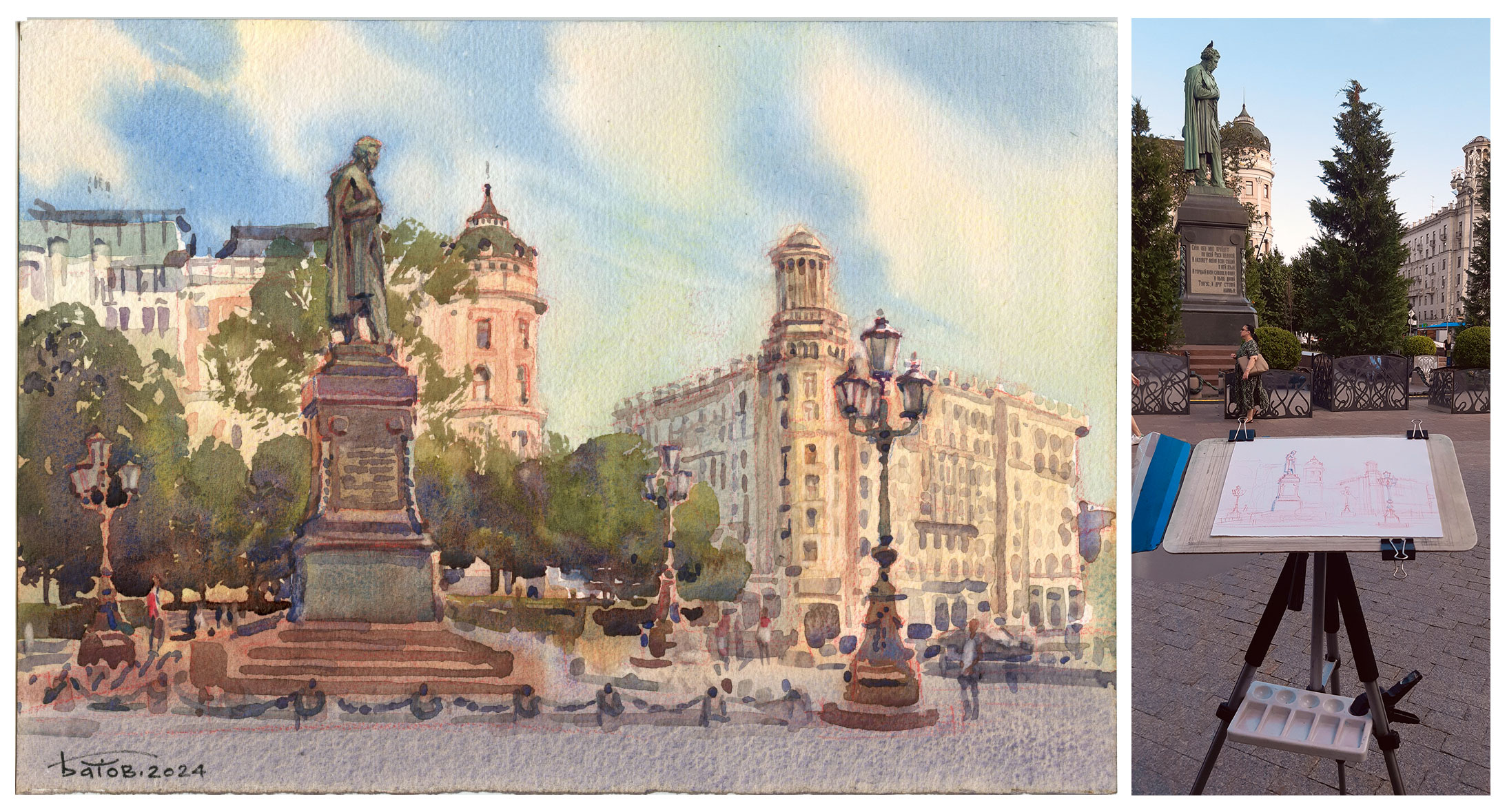 20240727 Пушкинская площадь. Натурный этюд, акварель