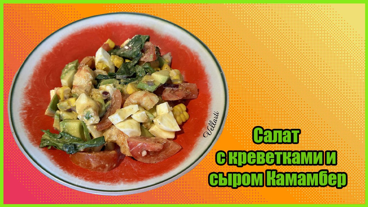 Салат с Креветками Шпинатом и сыром Камамбер