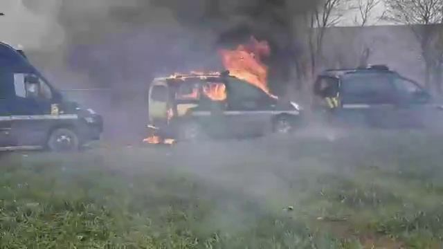 Горящие машины, дым повсюду кадры столкновений полиции и протестующих во французском Сент-Солине