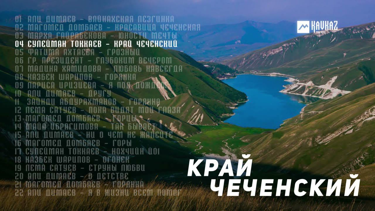 Край Чеченский 00:00 01 Али Димаев - Вайнахская лезгинка 04:48 02 Магомед Домбаев - Красавица чеченская 07:43 03 Марха Гайрабекова - Юности мечты 11:49 04 Сулейман Токкаев - Край Чеченский 16:56 05 Фатима Ахтаева - Грозный 21:18 06 гр. Президент - Глубоким вечером 25:08 07 Мадина Хамидова - Любовь навсегда 29:37 08 Казбек Шарипов - Горянка 32:53 09 Лариса Иризиева - Я под дождем 36:36 10 Али Димаев - Другу 41:19 11 Зайнди Абдурахманов - Горянка 44:13 12 Лема Сатуев - Пока видят мои глаза 48:05 13 Магомед Домбаев - Горцы 51:50 14 Майа Ибрагимова - Так бывает 55:00 15 Али Димаев - Ни о чем не жалейте 59:50 16 Магомед Домбаев - Горы 1:04:22 17 Сулейман Токкаев - Нохчийн йо1 1:08:25 18 Казбек Шарипов - Огонёк 1:12:14 19 Лема Сатуев - Струны любви 1:15:58 20 Али Димаев - О детстве 1:19:39 21 Магомед Домбаев - Горянка 1:24:15 22 Али Димаев - Я в жизни всем помог