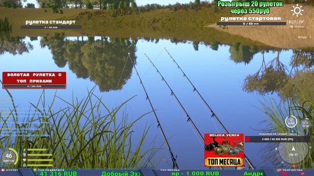 Поддержка донатом https://www.donationalerts.com/r/kalyamba11 Альтернативный донат https://new.donatepay.ru/@1032463 ТОП МЕСЯЦА ПОЛУЧАЕТ ЛЮБУЮ ВЕНГУ ИЗ МАГАЗИНА Если стрим лагает,смотри стрим на трово https://trovo.live/s/Kalyamba_na_Ribalke Мой ВК - https://vk.com/kalyantv НИК в игре kalyan11 НАШ ДИСКОРД СЕРВЕР https://discord.gg/mSbnTJK8TB Заказ водоема на 1 час - 500р ( весь стрим 2500р ) Модерка на канале 1200р ( каждая следующая на 100р больше) Озвучка доната на 40р,50р,100р,200р,300р,500р,1000р ✅Призы в рулетке "ЗОЛОТАЯ" ✔ ЗОЛОТО ✔ ПРЕМ ✔ КАТУШКИ РАПТОР 40, АЗИМУТ 10000, СИЛЬВЕР 80, ТАЙГА с 30 ✔ ПАЛКИ ПИЛКЕРНАЯ, ДОНКА МОРСКИЕ, ✔ РОД ПОД, СТУЛЬЯ ✅Призы в рулетке СТАНДАРТ : ✔ катушка "РАПТОР 40" ✔ катушка "АЗИМУТ 10000" ✔ катушка "ТАЙГА С30, С40," ✔ катушки 60 для медного ( ЭВИИ, НАТОРЫ, ГОЛДА, и тд) ✔ ПИЛКЕРНОЕ УДИЛИЩЕ КОРОЛЕВА ОКЕАНА ✔ Морское Донное удилище ✔ прем ( 3, 7, 30 дней) ✔ золото ( 1, 3, 5, 10, 20 ,50) ✔ билет на море ( 1, 3, 5 дней) ✔ голд наживка и др. ✅Призы в рулетке "СТАРТОВАЯ" ✔ катушка "silver80" ✔ катушка "БЕЛЫЙ КАЛИБР" ✔ катушка "Черный калибр" ✔ катушка "Протон" ✔ катушка "Нарга 6000" ✔ Набор Фидерист и спинингист ✔ Карповик Фортуна ✔ фидерные удилища ✔ прем, золото, алкашка, наживки и тд P.s Рулетка это не казино, а награда за поддержку стримера. Вечный ТОП ПОДДЕРЖКИ (11.05.2024) 1. Dimon_pokemonchik 119 784 2. Interceptor 75 508 3. Skreb79 71 261 4. une personne 68 619 5. Нарвал77 31 550